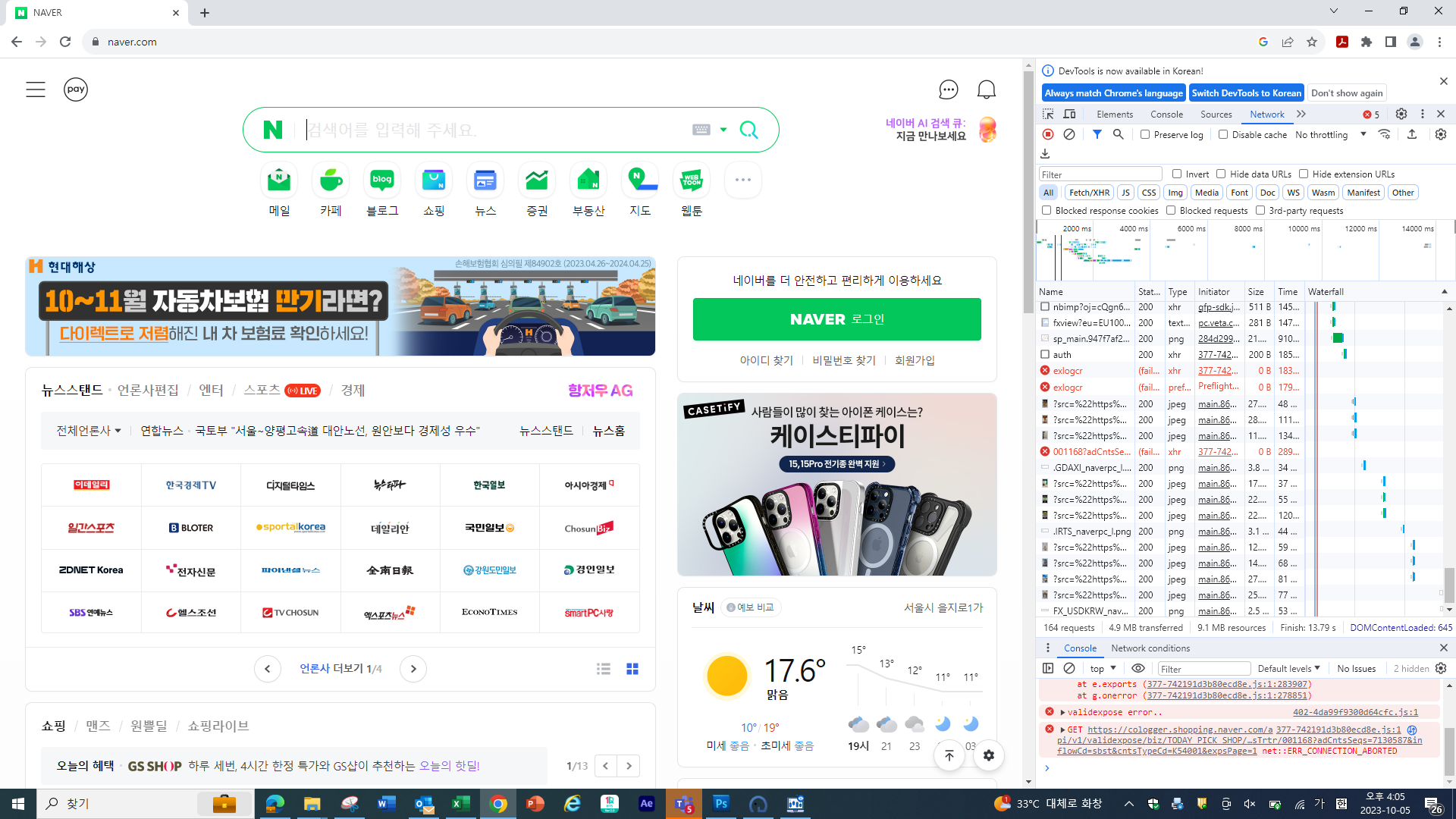 ④ 측정할 웹사이트에 접속합니다.