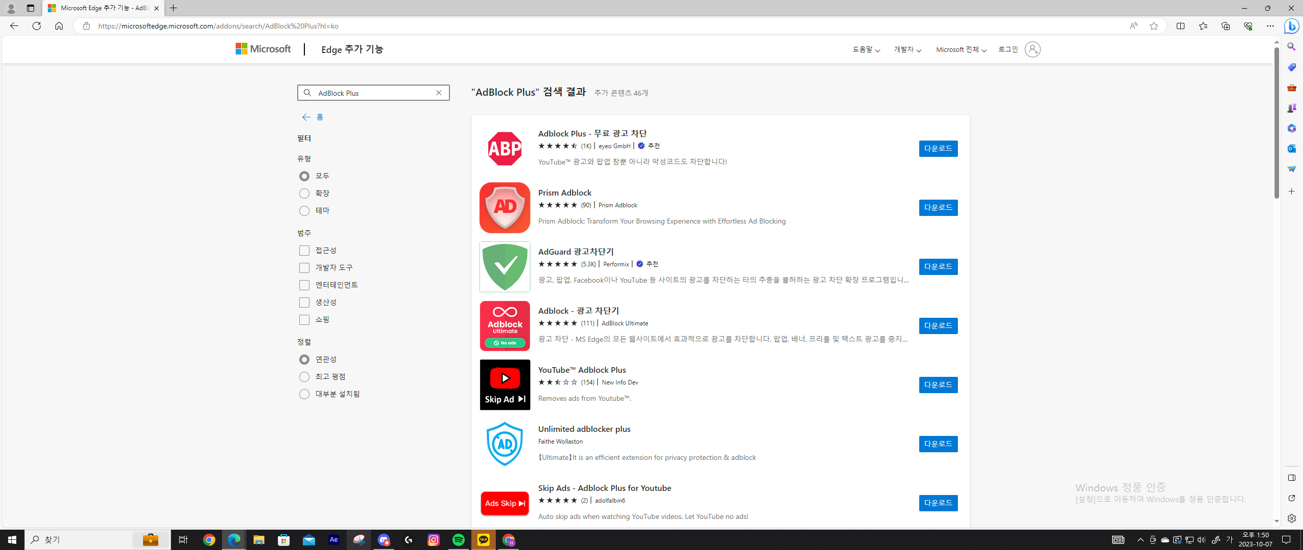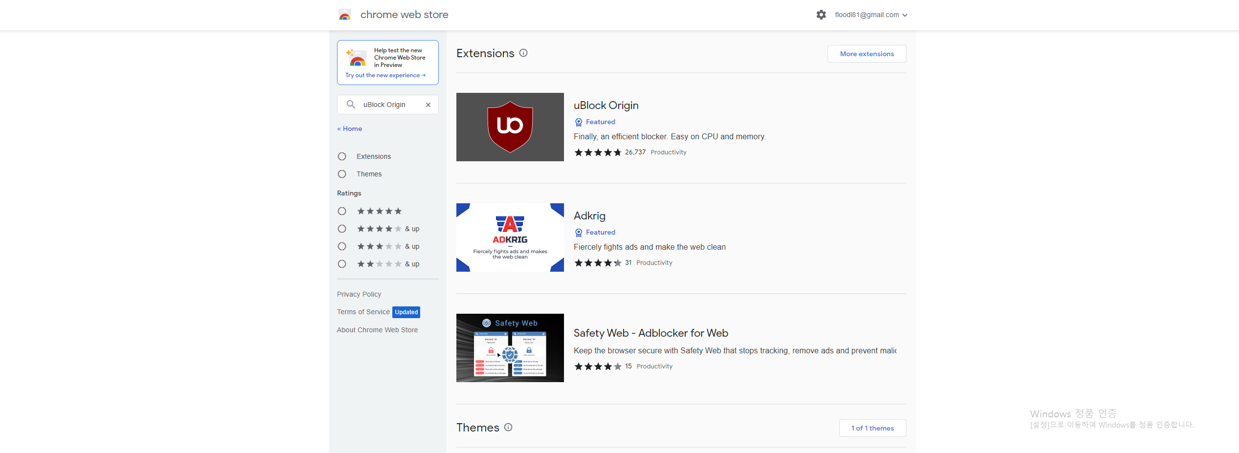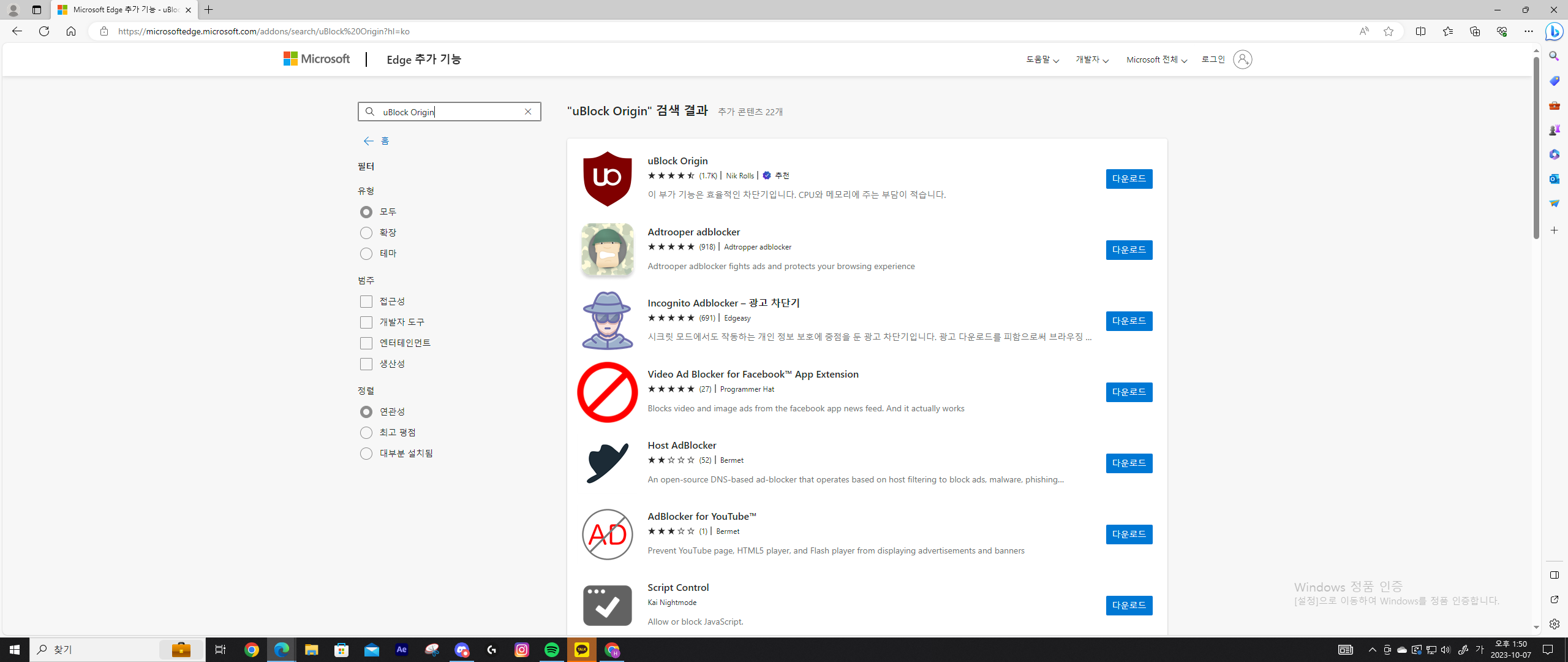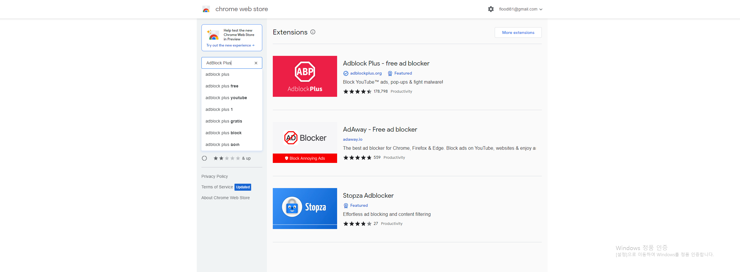 ④ AdBlock Plus 또는 uBlock Origin을 검색합니다.