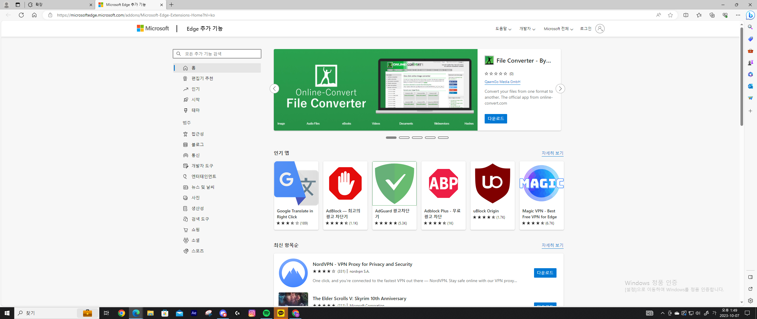 YOUTUBE 애드블록 Micrisoft Edge 설치 방법